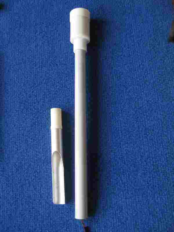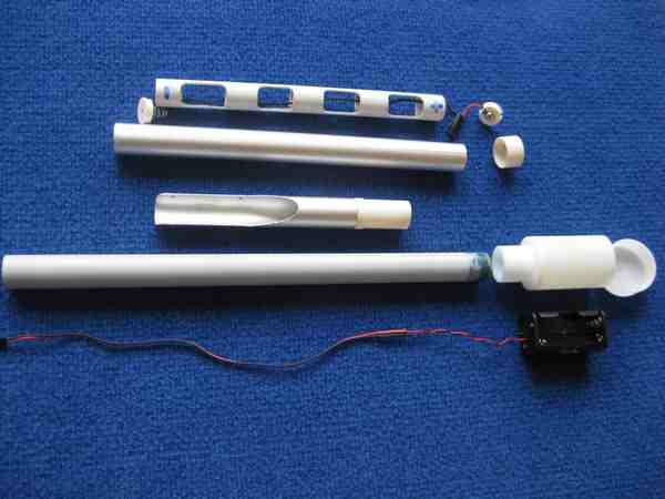 J'ai utilisé un morceau de canne à pêche pour le corps (plus léger que le manche à balai en alu de la première modif) et j'ai réalisé une boîte porte-pack en plastique (delrin) afin d'assurer une étanchéité de l'ensemble. Mon petit tour d'établi m'a bien aidé pour cette réalisation.mais un 'bricolage' pourrait aussi reprendere le principe.