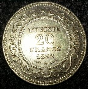 C'est une jolie 20 francs 1892 pour la Tunisie atelier A.