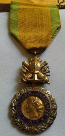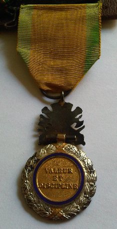 comme j'ai eu à l'armée: médaille de la défense nationale, médaille d'outre mer et médaille des nations unies