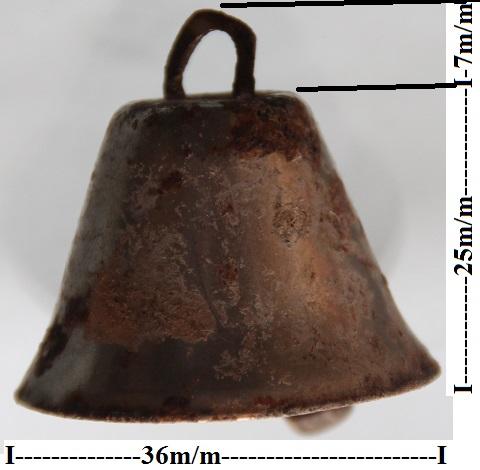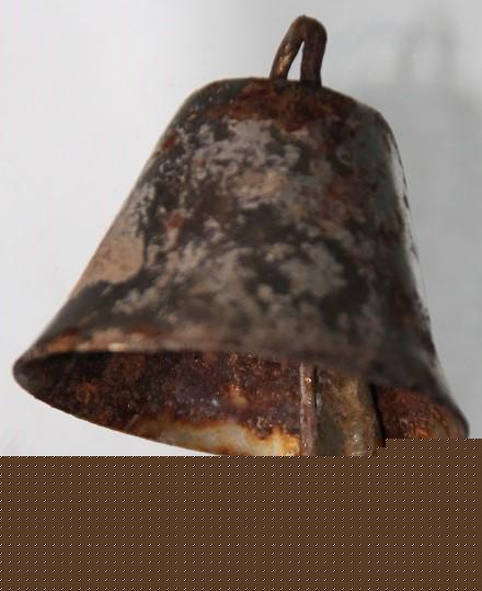 Complètement bidouillée, son battant a été perdu, et remplacé par un bout de métal auquel i a été soudé une vis à métaux
