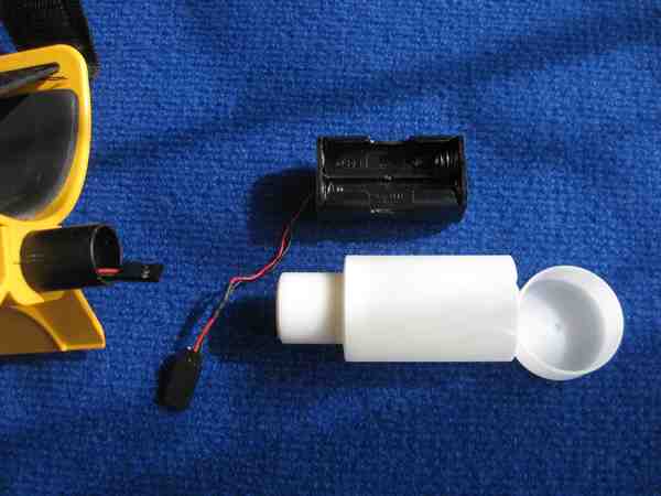 En ce qui concerne le porte piles, c'est un accessoire de radio-commande que j'avais en ma possession et que l'on trouve chez les revendeurs de matériel pour modélisme