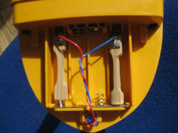 [1727] les fausses piles (en balsa) qui assurent la liaison courant sans faire de soudure sur les contacts originaux