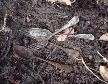 C'est émouvant : deux cuillères, deux fourchettes...j'imagine un pique nique en namoureux par un belle journée de printemps au milieu des champs....et puis....à un moment donné, ils ont du avoir mieux à faire et à penser qu'à ramasser leurs couverts !