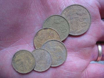 Il y a une monnaie de 50 F de 1952, 2 deux monnaies de 20 F de 1950 et une de 1951, une 10 F de 1952 et une de 1953.