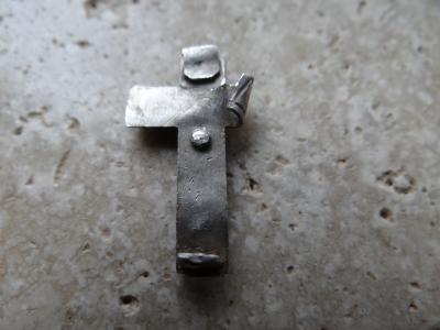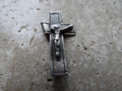 Pour la partage un petit crucifix trouvé dans un labour.Le pauvre il lui manque un bras.Il me semble en argent !!!2,4cm par 1,5cm.Voila mon unique trouvaille de la journée !!!
