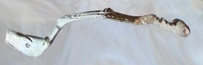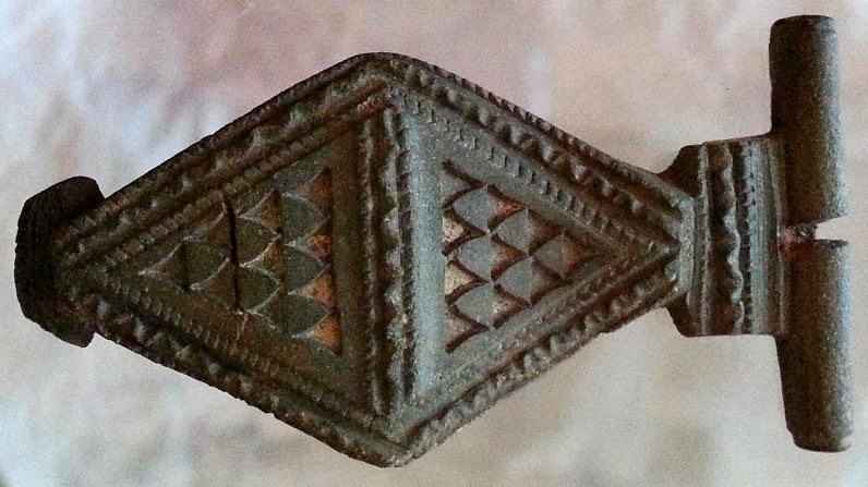 Voici un morceau de magnifique fibule emaillee geometrique GR fortuitee il y a un an environ. en bronze de qualite, 6cm de long, beau morceau