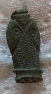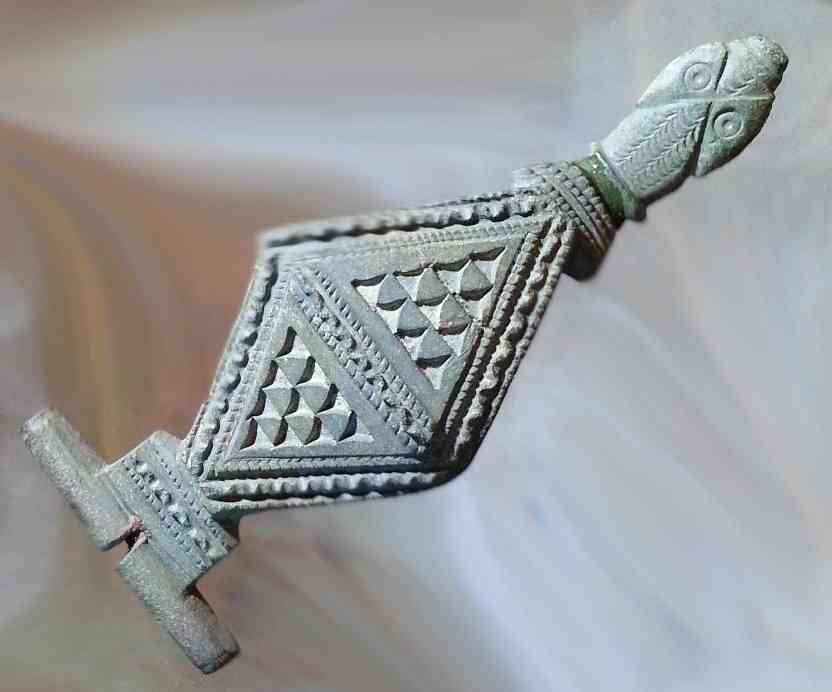 Fibule emaillee a decor geometrique et a pied figurant une tete de tortue, GR II eme, bien sur, et la petite a retrouve toute sa tete
