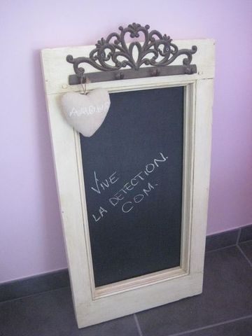J'ai viré la vitre et retiré le mastic, tout poncé, mis une patine décorative, ensuite j'ai mis une planche de CP de 5mm, recouvert d'une peinture à tableau.