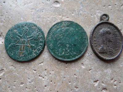 Voici mes trouvailles les plus belles de mardi.Sur la médaille 'Jesus ayez pitié de nous'(pour Lou gobi).Avec cela trois autres pièces mais trés savo.