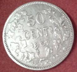 Il s'agit bien d'une monnaie en argent du Roi Leopold II. Cet exemplaire en langue neèrlandaise date de 1907 et a été frappée en 545 000 exemplaires. Cette monnaie est connue sous le nom de 50 centimes à la ''grande barbe''