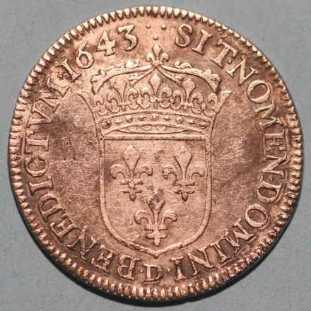Il s'agit donc de mon premier Louis XIII et c'est un 1/4 d'écu à la cuirasse 1643 atelier D.