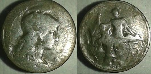 Et j'ai trouvé cette 5 centimes Dupuis de 1898, même pas eu besoin de la nettoyer en profondeur, elle était nickel, juste un léger coup de brosse pour enlever la poussière et un coup de coton pour la lustrer