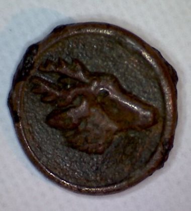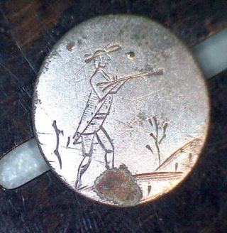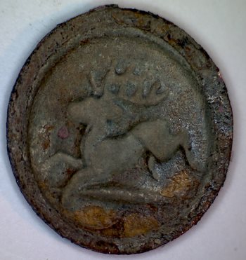 Je vous avais présenté notre dernière trouvaille ( mon frangin et moi ) : bouton vénerie à tête de cerf, XXme.
