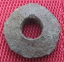 [1856] Pour le partage, voici ce que j'ai trouvé à quelques mètres d'une petite source qui se trouvait sur la propriété de l'ami qui m'hébergeait : ma première fusaïole ! y'aura quand même fallu faire cinq heures de route pour en dégotter une