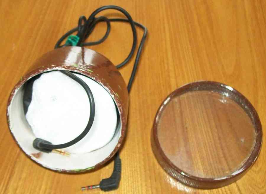 Alors vous prenez une petite boite PVC rigide, vous percez le fond pour le passage du fil, vous mettez un polystyrène et un fil mousse au fond, et pour le couvercle, le dessus d'une boite de biscuits apéro de chez Leader Pr..!