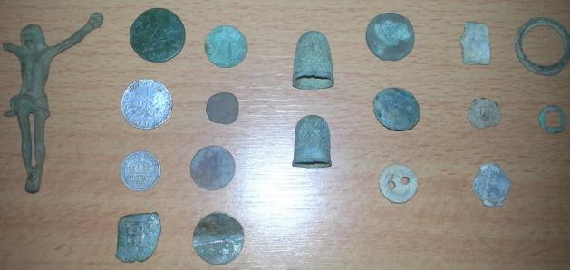 J'ai pas trop le tps de m'étaler sur le sujet, je pars bosser. Mais en gros, 2 monnaies en argent, 2 en billon et quelques autres objets sympas !