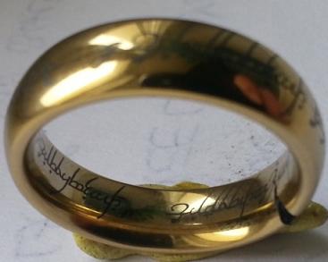 Tout y est : l'anneau, les gravures interieur-extérieur en langage Elfique bref que du bonheur...sauf que c'est en Tungsténe plaqué or à 15 euros sur le net
