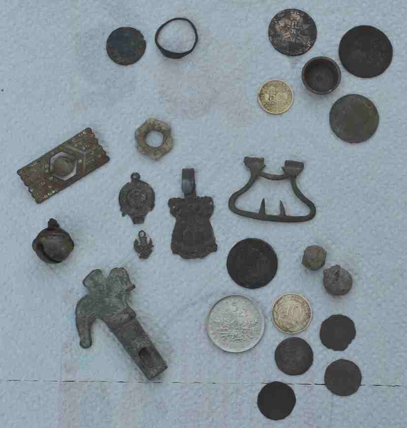 5 centimes napo 3 HS , 4 DT savos, 5 frs 1970, 10 centimes 1965, une clé de robinet, et le reste vous le voyez sur la photo.