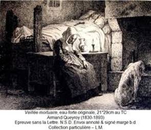 Et quand un ivrogne était trouvé dans la rue, il n'était pas rare qu'on entreprennent de lui faire sa toilette funèbre. Il restait ainsi plusieurs jours sur la table de la cuisine, où la famille s'assemblait pour boire un coup en attendant que l'olibrius revienne à la conscience : d'où l'habitude de la veillée mortuaire.