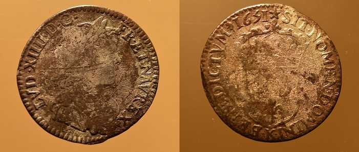 Pour le plaisir, c'est la première monnaie de ce genre que je trouve, donc je vous la fait partager, c'est un douzième d'écu louis XIV à la mèche longue de 1651, atelier de Bordeaux (k), poids de 1.98 gr. 192586 exemplaires diamètre 20mm, je le dédicace à Thierry24, pour ses précieux conseils !