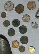 - Pas mal de couverts dont une belle petit cuiller bien tordue mais entière avec des initiales sur le bout du manche.