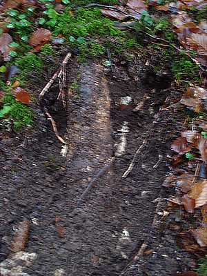 Enfin , ça sonne bien pile sous cette grosse racine de 10 cm, mais faut pas compter la couper , contournons là ...
