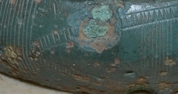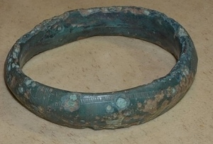 Grosse joie en sortant ce bracelet de terre qui pourrait daté de l'âge de bronze. Il est vert avec des détails très fin.C'est bête il est piqué...