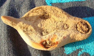 Sur les rochers au bout de la plage à cent mètres de l’hôtel il y à une basilique chrétienne du IVème siècle après JC. Dans le reste du mur a ras du sol j’ai trouvé cette lampe à huile presque intacte malgré les destructions , le passage des archéologues et même des milliers de touristes . Imaginé l’émotion et ma joie après cette découverte. Après quelques jours et avant mon retour je me suis rendu a la capitainerie du port pour donner ma découverte a la police avec le lieu de découverte de celle-ci.