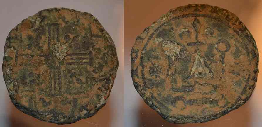 Une petite monnaie sortie d'un labour du 27. 20 mm de diamètre.