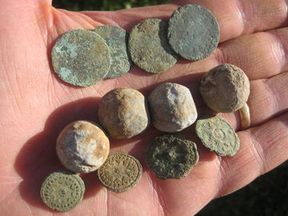 Ah qu'il est bon un vendredi soir juste après le travail de partir dans un p'tit sous-bois avec une belle lumière qui traverse les feuilles vertes des arbres !! Et voilà que ce soir, pendant 1h15 j'ai sortie tout en 4 !!! En effet, car j'ai sorti 4 balles de mousquet, 4 boutons type Vendéen, et 4 liards de France !! Pour finir, j'aurai bien aimé 4 louis d'or !!!