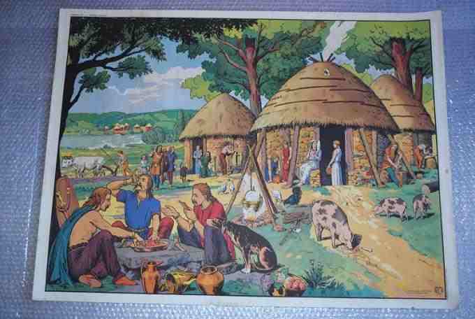 Mon tout 1er cours d'histoire en CE1.à peu près la même gravure. Au dessous il était écrit : Les gaulois habitent dans les forêts dans de petites hutes en bois, faites de branches