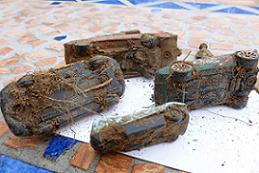 [1853] , a tous de retour dans mon bac a sable, quatre voitures, un bonhomme, et quelques monnaies, pour le partage, photos après nettoyage, bonne soirée a tous.