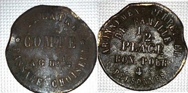 Voici un jeton de théâtre trouvée il y a quelques temps. Il était complétement plié et il a fallu travailler pour le redresser.