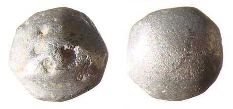 Voici, ci dessous, une petite boule, trouvée en 2012,...qui n'a pas vraiment trouvé d'id garantie.. même s'il était plus vraisemblable que c'était plus un bouton qu'une monnaie globulaire...