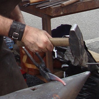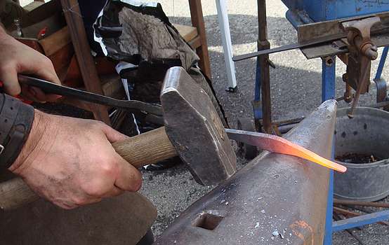 Cet aprem, dans une petite fête dans un village voisin, j'ai eu la chance de retrouver un de mes ancien élève que j'ai eu il y a environ 25 ans, en fait c'est lui qui m'a reconnu... Forgeron, c'est pas son boulot mais sa passion et avec un professionnel , il fait des démonstrastions de forgeage lors de fêtes traditionnelles où les vieux métiers sont à l'honneur...L'objet qu'il a confectionné ci-dessous est dans son répertoire puisqu'il est aussi passionné des outils et armes médiévales...