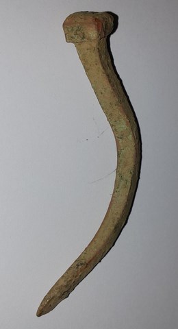 à quelle époque estimez vous ce clou Finistérien en cuivre avec tête carrée à peine 10 cm de long?