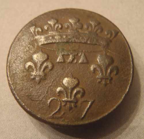 Les fleurs de lys brillent comme si c'était de l'argent. Il reste une sorte de patine verte. Je vois le chiffre 27 en bas.