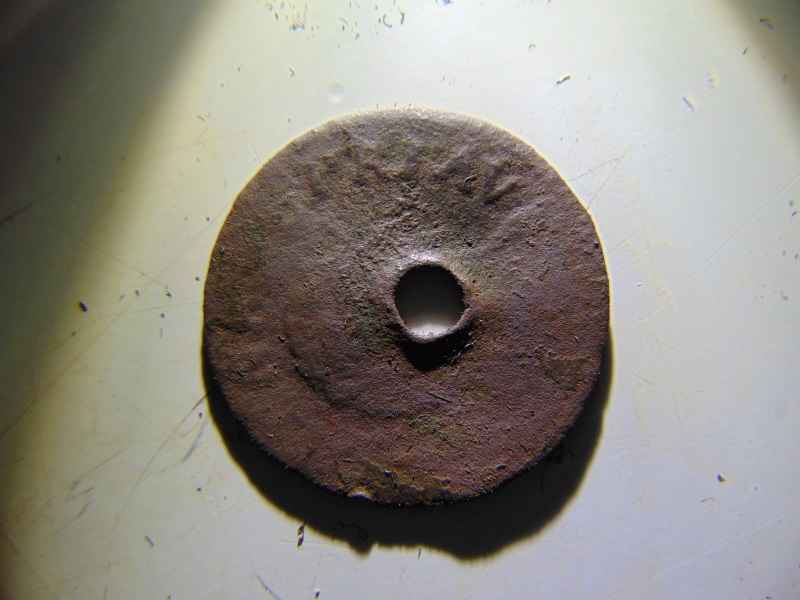 c'est une monnaie qui a servi de rondelle , pratique 'habituelle' de nos anciens