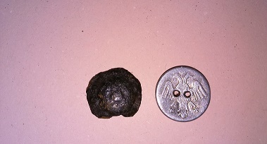 deux petit boutons a id svp, un en alu, l'autre en bronze( peut etre) les deux font 19 mm de diametre celui en alu a un oiseau a deux tetes et l'autre a une fleur genre pensee