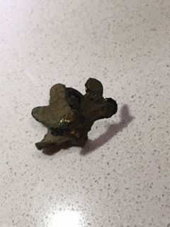 J'ai trouver ces 2 petits trèfles ou fleurs de lys (j'hésite ). il devait en avoir d'autre à la suite je pense. La terre tien très très bien dessus, j'ai peur de forcer le nettoyage au risque de perdre les restant de dorure..