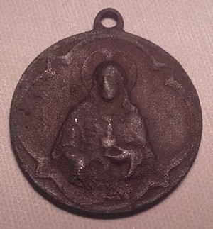 Sur l'avers, je pense qu'il s'agit du Christ tenant un cœur dans sa main gauche.