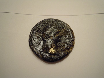 Cette pièce n'a qu'une face 'visible' qui ressemble à une Monnaies Domitien (81-96). Sesterce. Rome, 92-94 d'après mes recherches bonnes ou mauvaises!