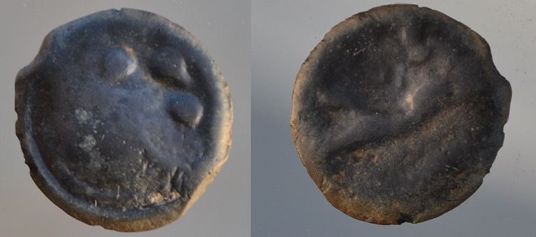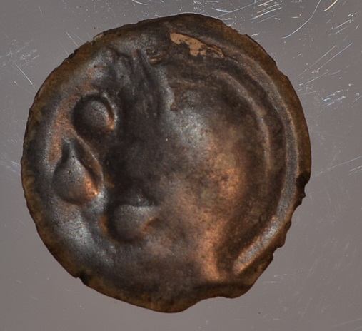 Merci à toi. Pas facile ...J'en ai vu une très jolie sur gog des Bituriges Cubes comme celle que tu m'as décrite. C'est vrai qu'on peux imaginer une calotte crânienne et également le taureau mais les pour les points j'ai un doute.