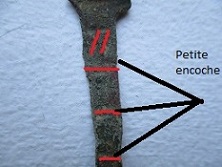 Longueur: 50mm. Largeur a la partie la plus large: 15mm Métal: Bronze