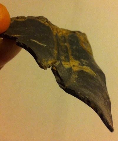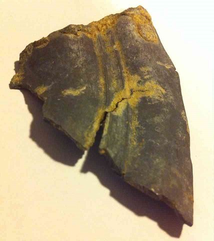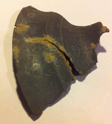 Voici un fragment qui me fait penser a un fragment de vaisselle, trouvé par mon beau frère qui s'est passionné pour la détection il y a peu et qui a déja acheté son détecteur de métaux (un déus) ! Deux stries décrivant une trajectoire circulaire sont visibles sur une face. Serait-il possible de dater approximativement ce genre d'objet?