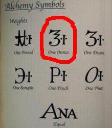 Comparée au symbole d'alchimiste pour 'one ounce' (une once)...