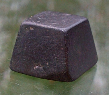 il est de forme pyramidale tronquée mais je n'en ai vu qu'en plomb de cette forme