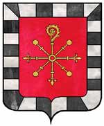 Armes: De gueules à une escarboucle pommetée et fleurdelisée d'or, exceptée la branche du milieu qui est terminée en crosse aussi d'or.