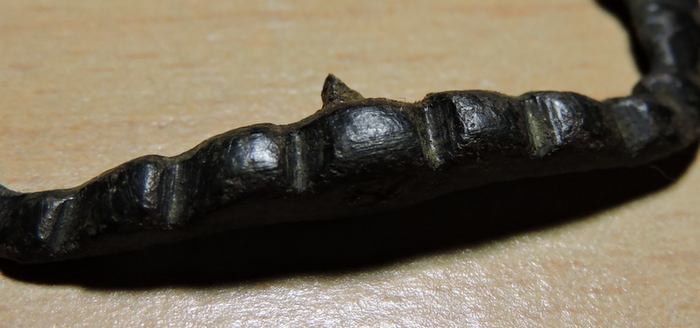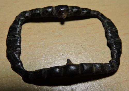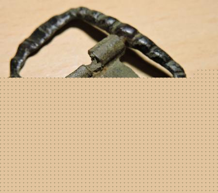 au fait boucle de chaussure , je pense , assez joliment décorée , peut etre a la lime ?