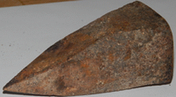 Du même avis que JC, une pointe d'outil, genre pioche, sectionnée.